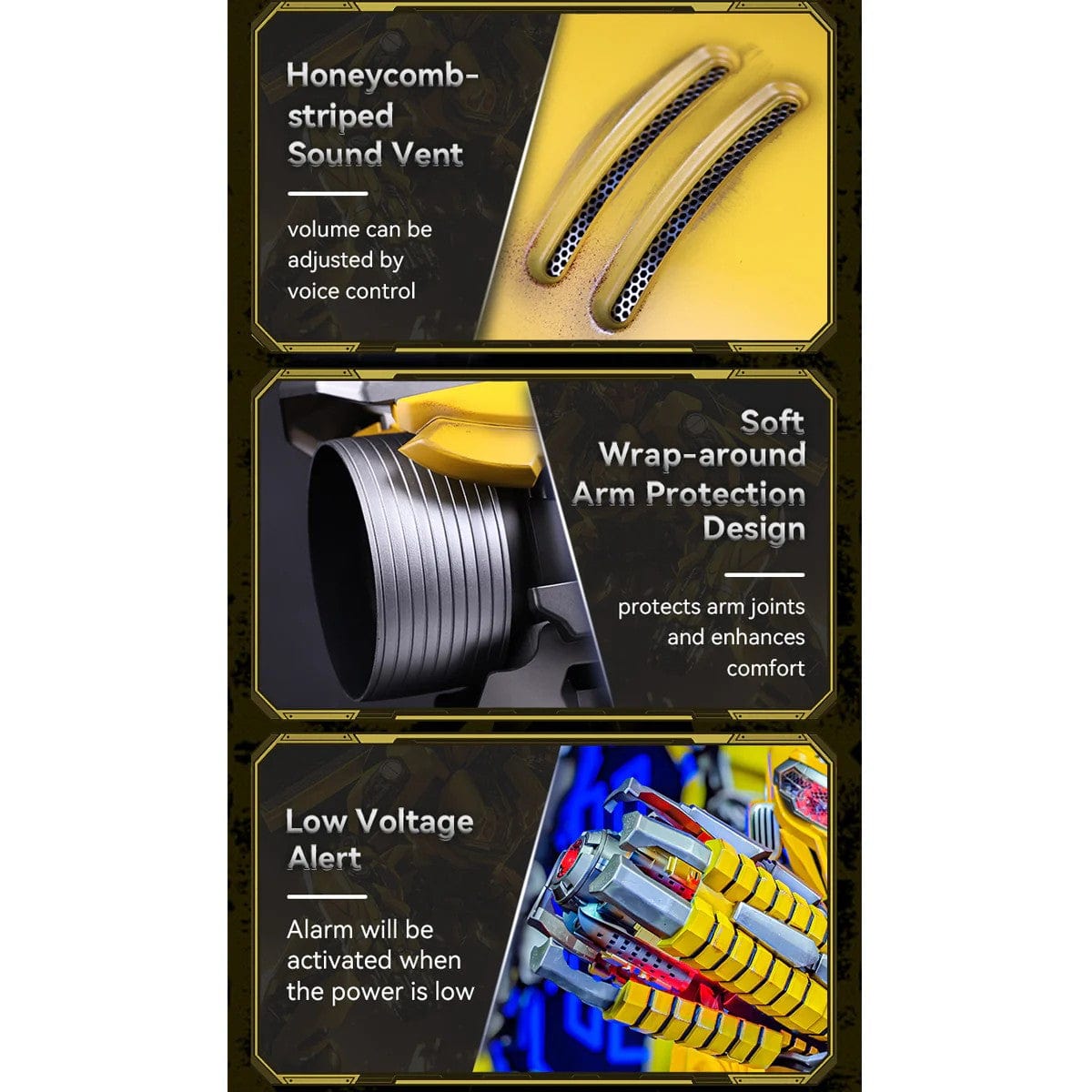 12. Classic Bumblebee yellow metallic texture and handcrafted Battle-Damaged weathering and synchronized operate different actions with helmets under same voice action commands